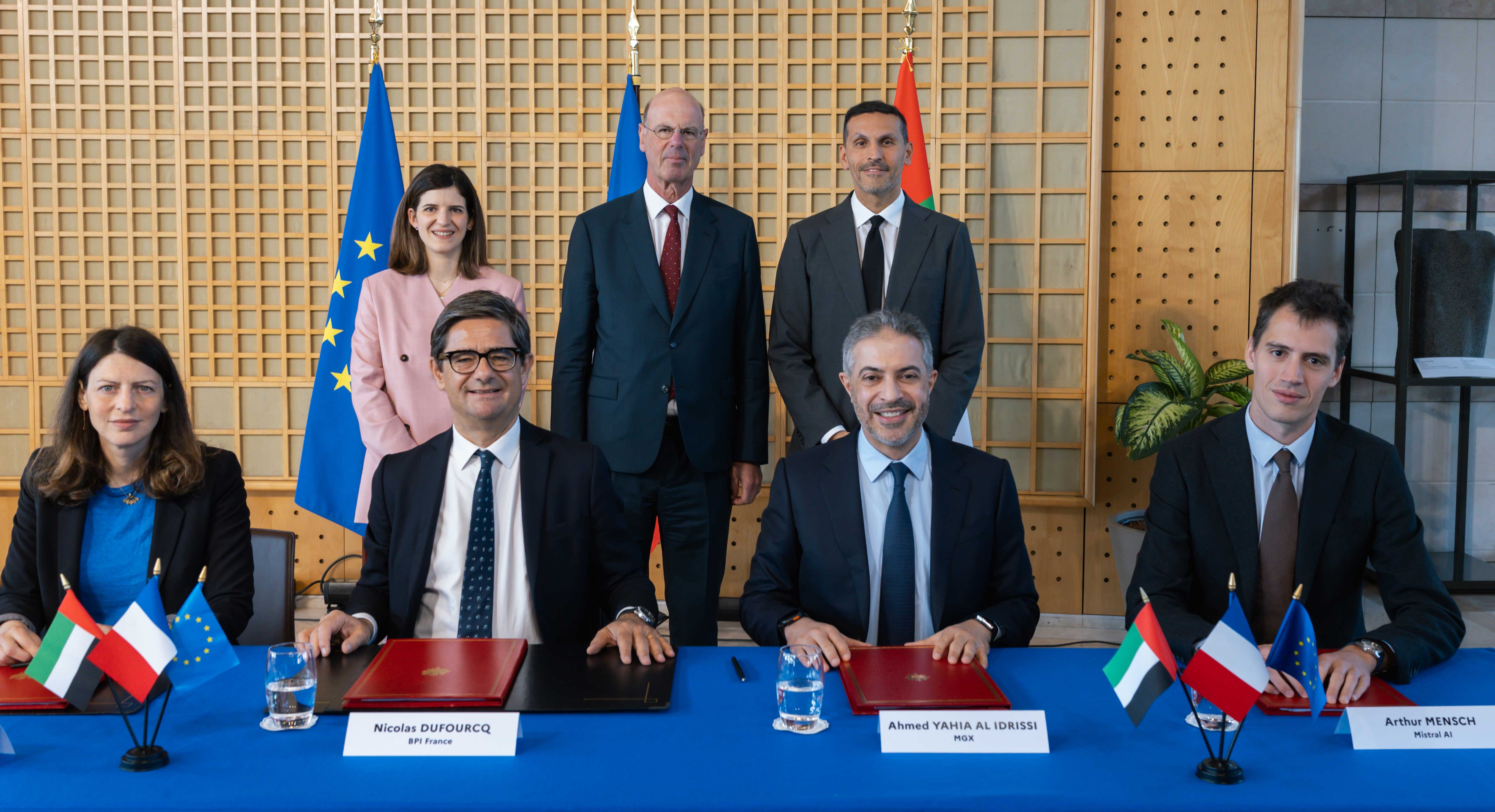 The joint venture signing ceremony was witnessed by Mr. Eric Lombard, French Minister of Economy, Finance, and Industrial and Digital Sovereignty, and His Excellency Khaldoon Al Mubarak, Chairman of the Executive Affairs Authority and member of the Artificial Intelligence and Advanced Technology Council.
